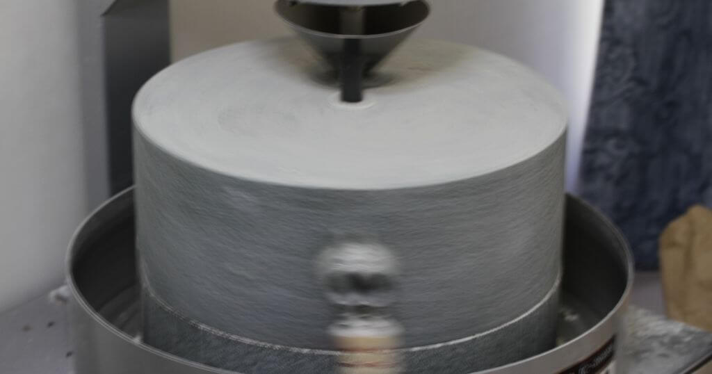 さて、こうした数々の点心は、寺を通して民衆にも振る舞われるようになり、粉食が一気に時代の最先端へと躍り出ます。ここで一つの疑問が。これほど大量の小麦粉を、一体どうやって用意したのか?ここで、それまで杵と臼の「叩く」が主役の時代から、「回転する」石臼が主役となります。