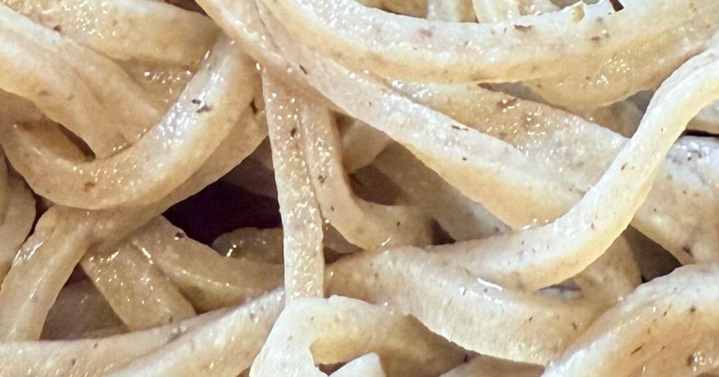 そうして仕上がったそばは、白く透き通るような色合いで、味わいは淡白ですが、プリっとした食感とツルッとした食感は抜群のものとなります。